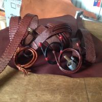 He has now been plaiting leather for 40 years and is specialising in personalised orders to meet the needs of the client. He crafts all his articles from Kangaroo skin which is the strongest leather in the world. He crafts a wide selection of goods from your traditional plaited belt to high-end fashion items.